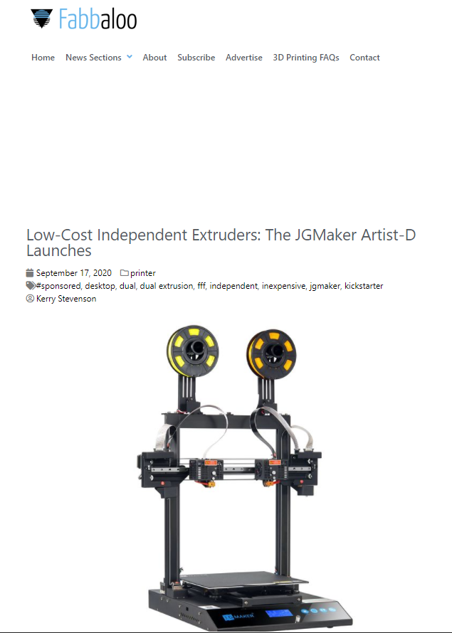 (https://3dprint.com/273028/cost-effective-independent-dual-extruders-direct-drive-3d-printer-jgmaker-artist-d-launch-at-kickstarter/)