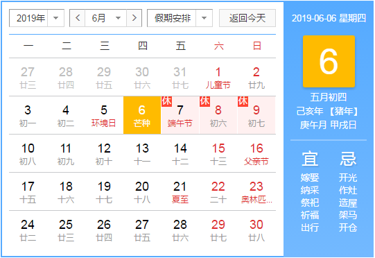 根據《國務院辦公廳關于2019年節假日安排的通知》,結合公司實際情況,2019年端午節假期安排如下: