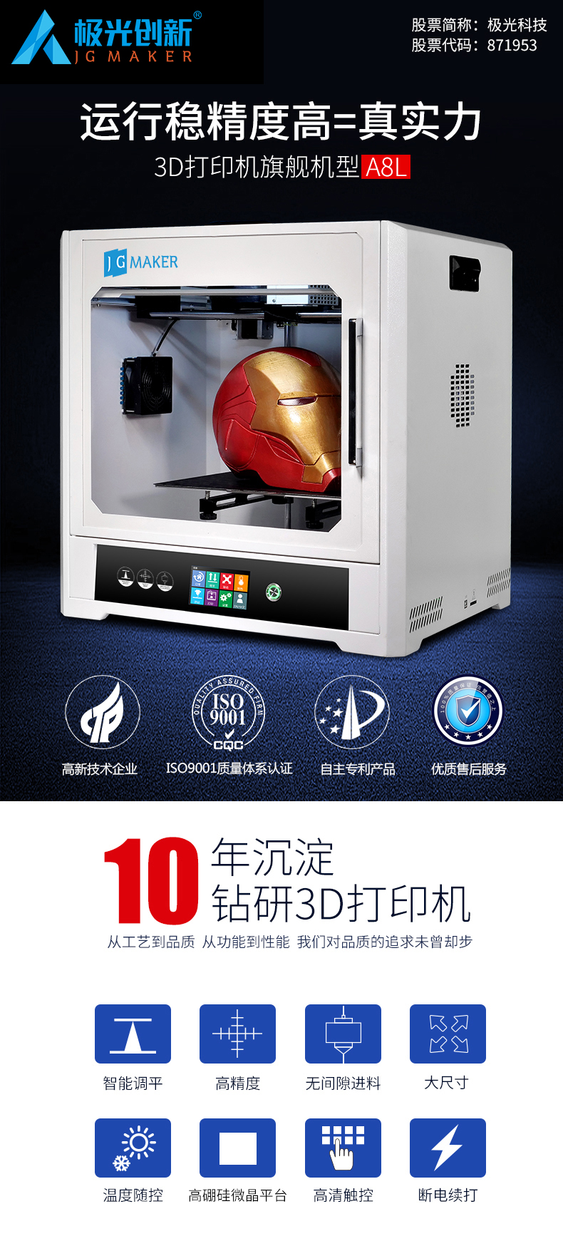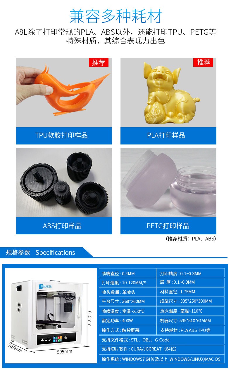 JG-E8L 商用級高精度3D打印機
